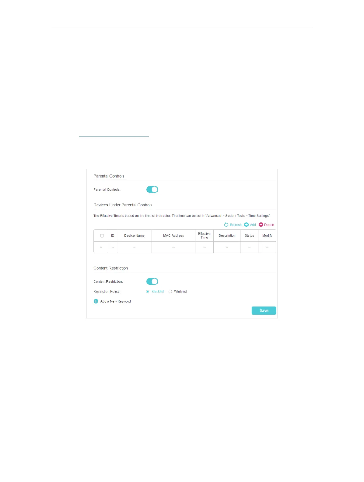 2. Go to Basic or Advanced > Parental Controls and enable Parental Controls.