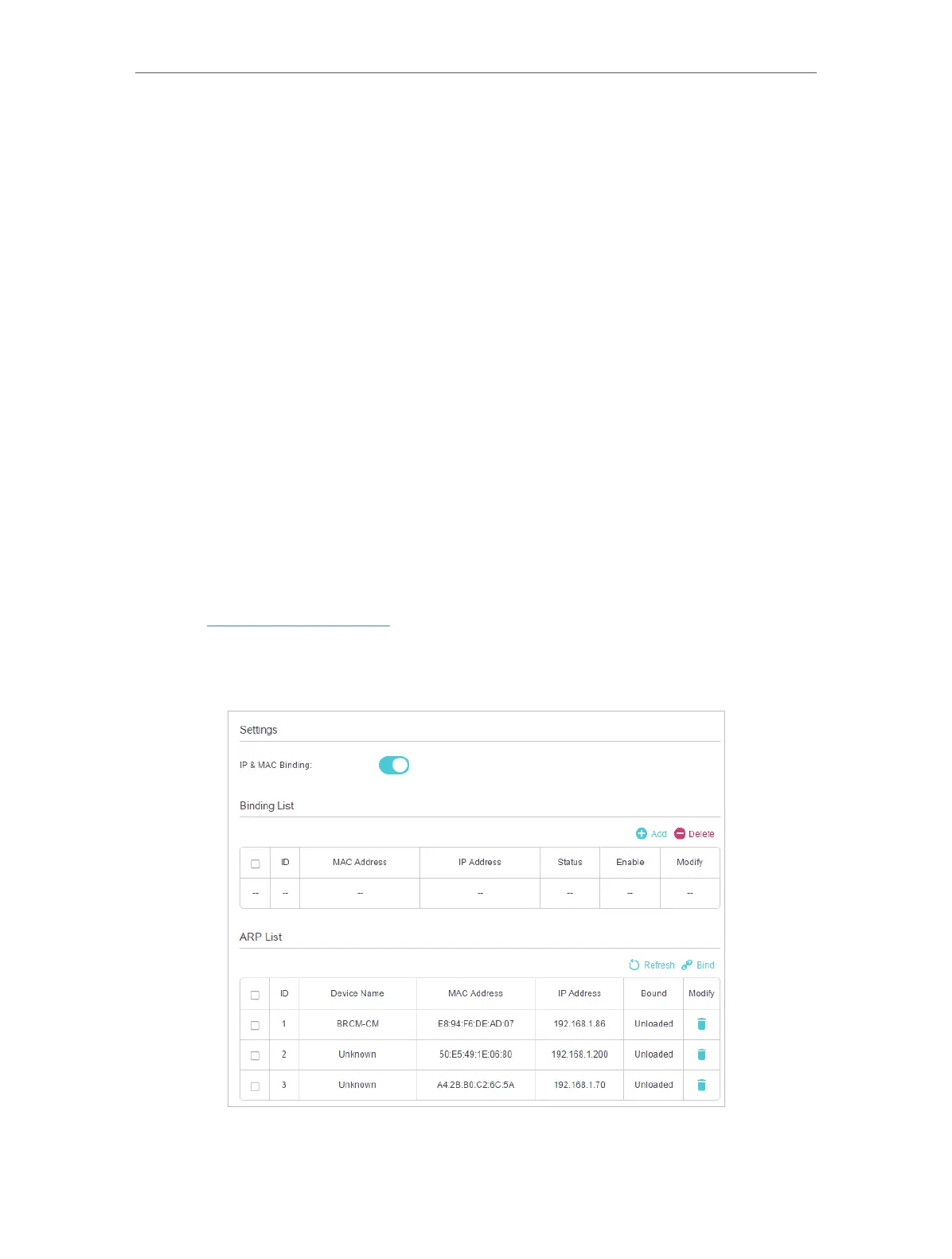 2. Go to Advanced > Security > IP & MAC Binding and enable IP & MAC Binding.