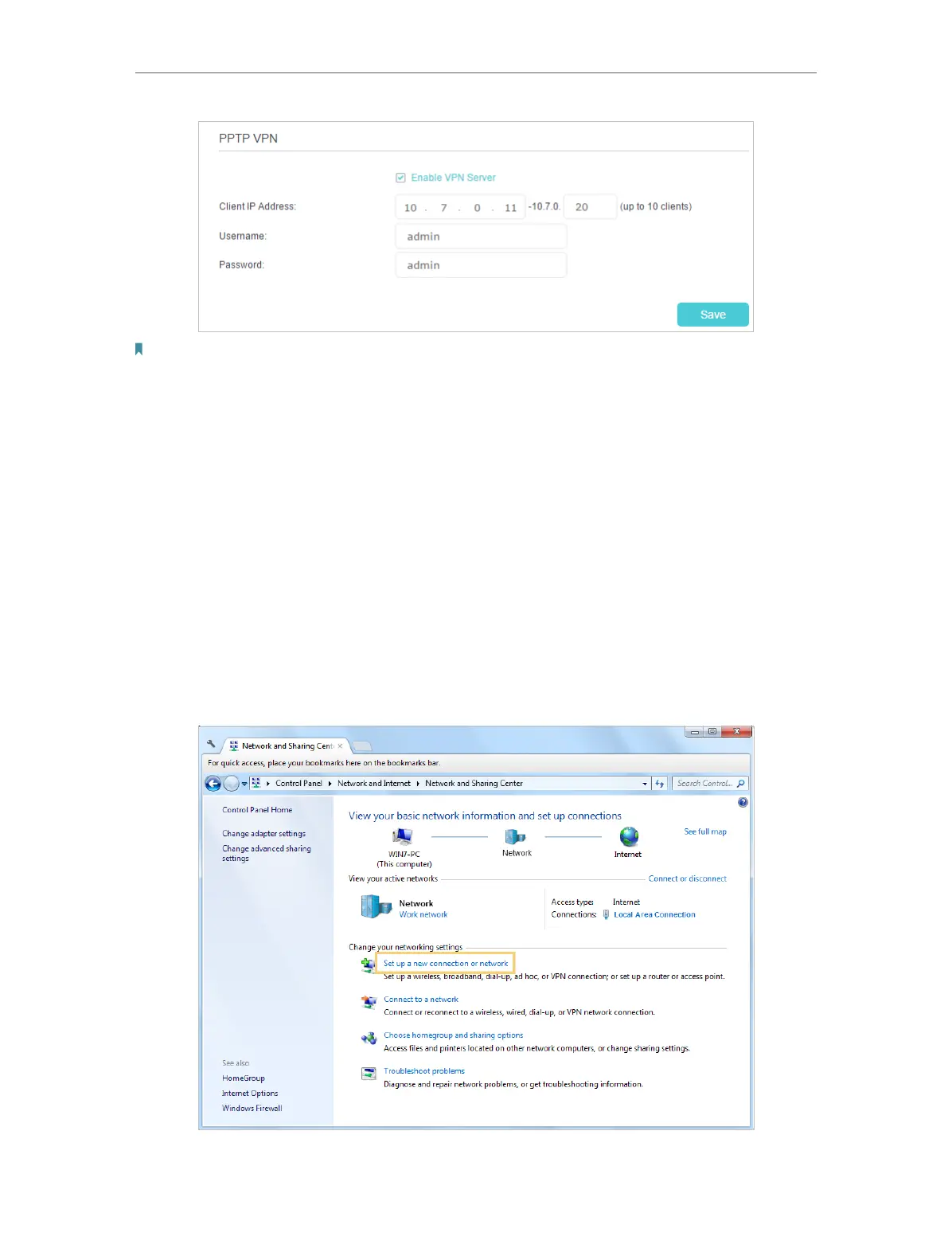software to connect to PPTP Server. Here we use the Windows built-in PPTP software