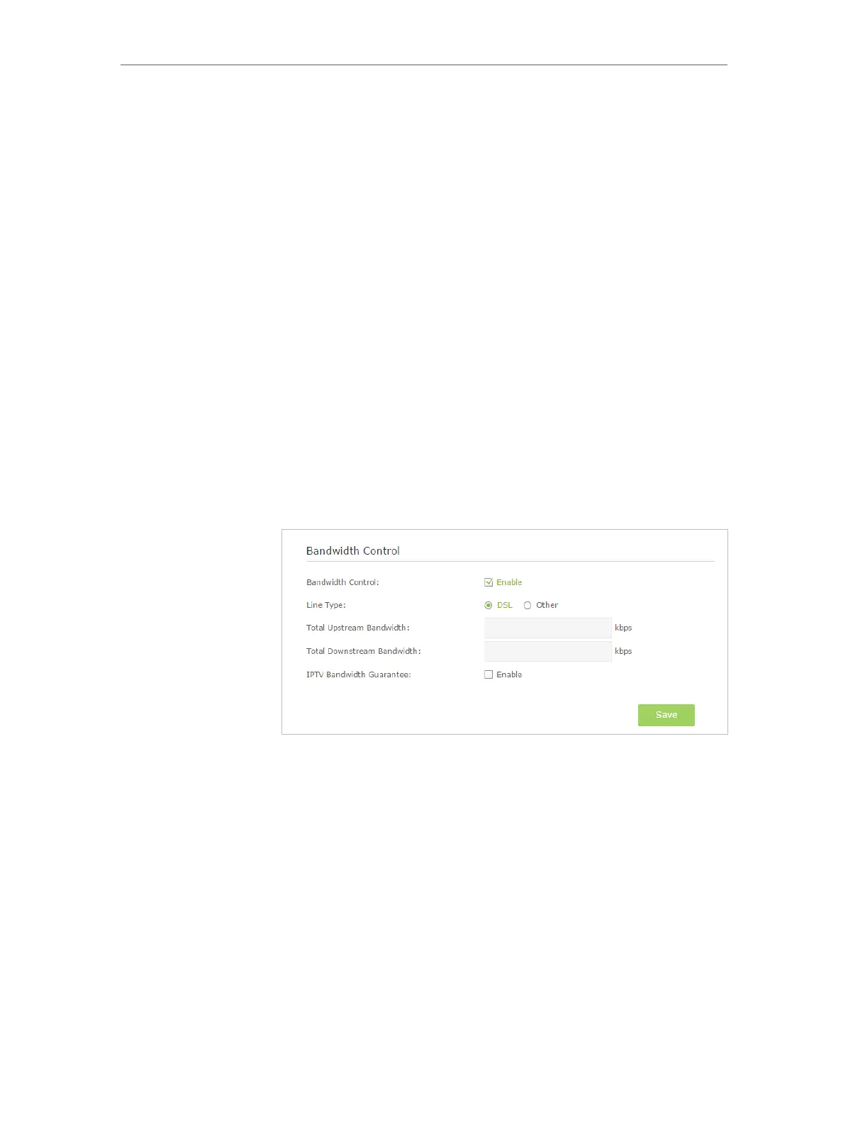 Bandwidth given by your ISP (1Mbps=1024kbps). Click Save