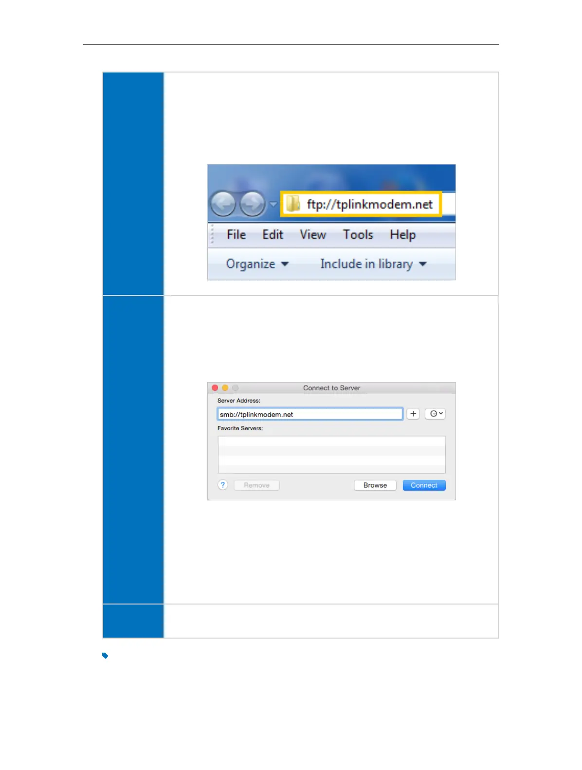 server address \\tplinkmodem.net or ftp://tplinkmodem.net in the