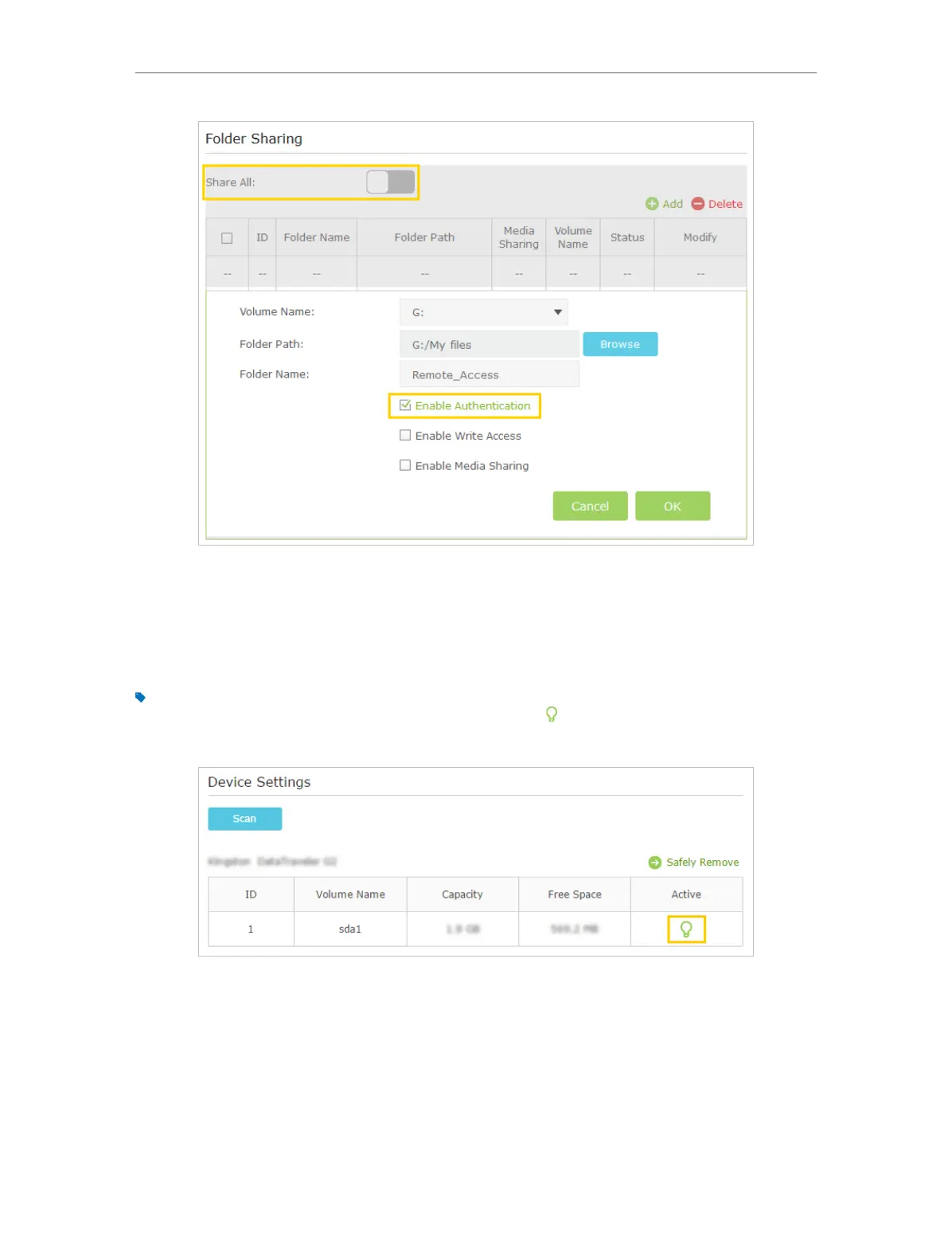 4. Tick Enable Authentication. If you allow network clients to modify this folder, tick