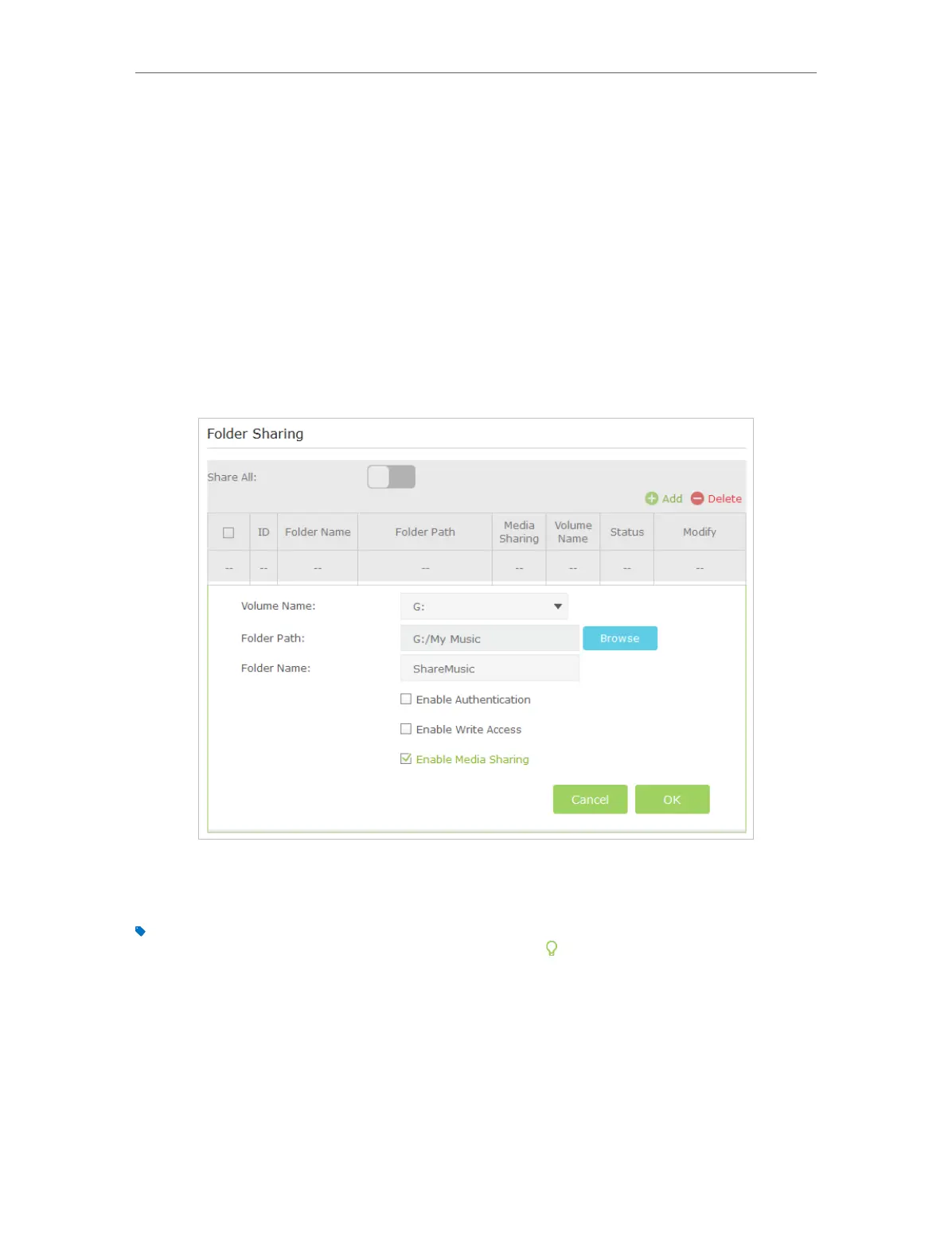 click Add to add a new sharing folder.
