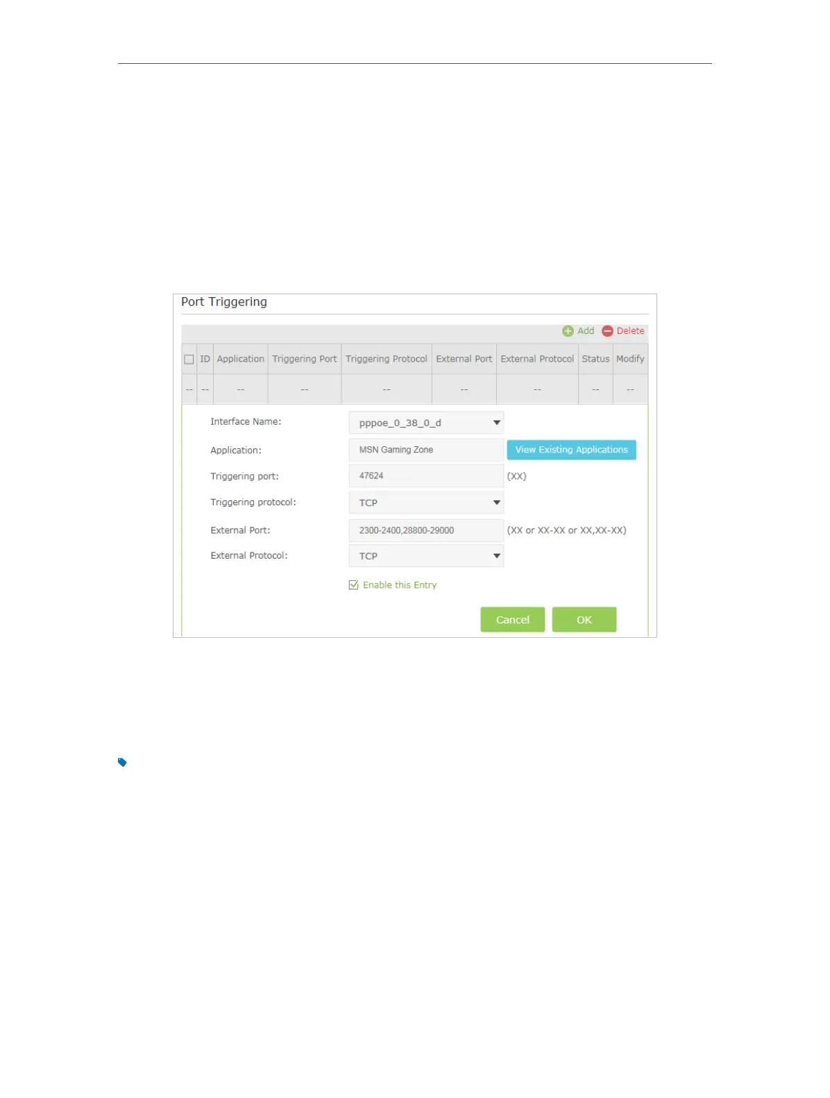 modem router can forward them to the corresponding host. Port triggering is mainly