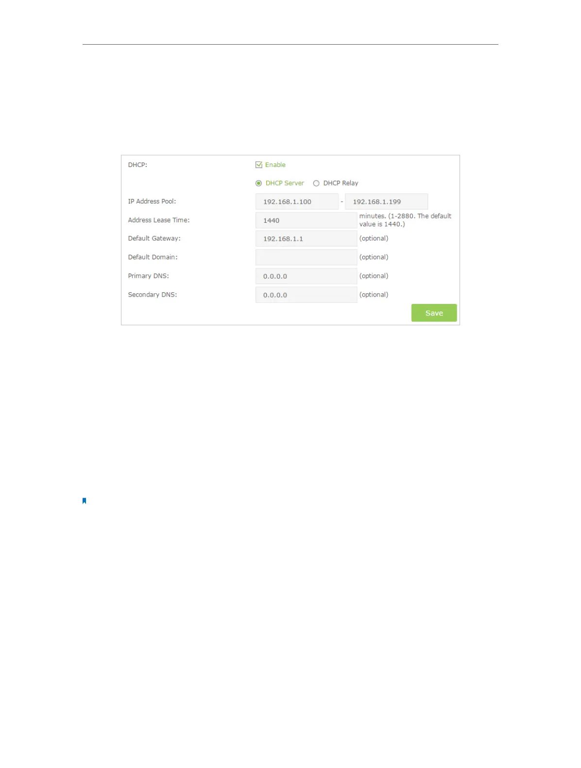 Follow the steps below to configure DHCP server.
