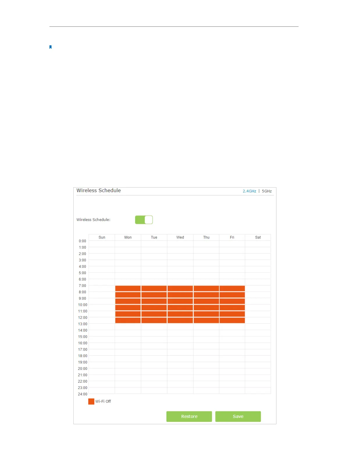 You can automatically turn off your wireless network (both 2.4GHz and 5GHz) when