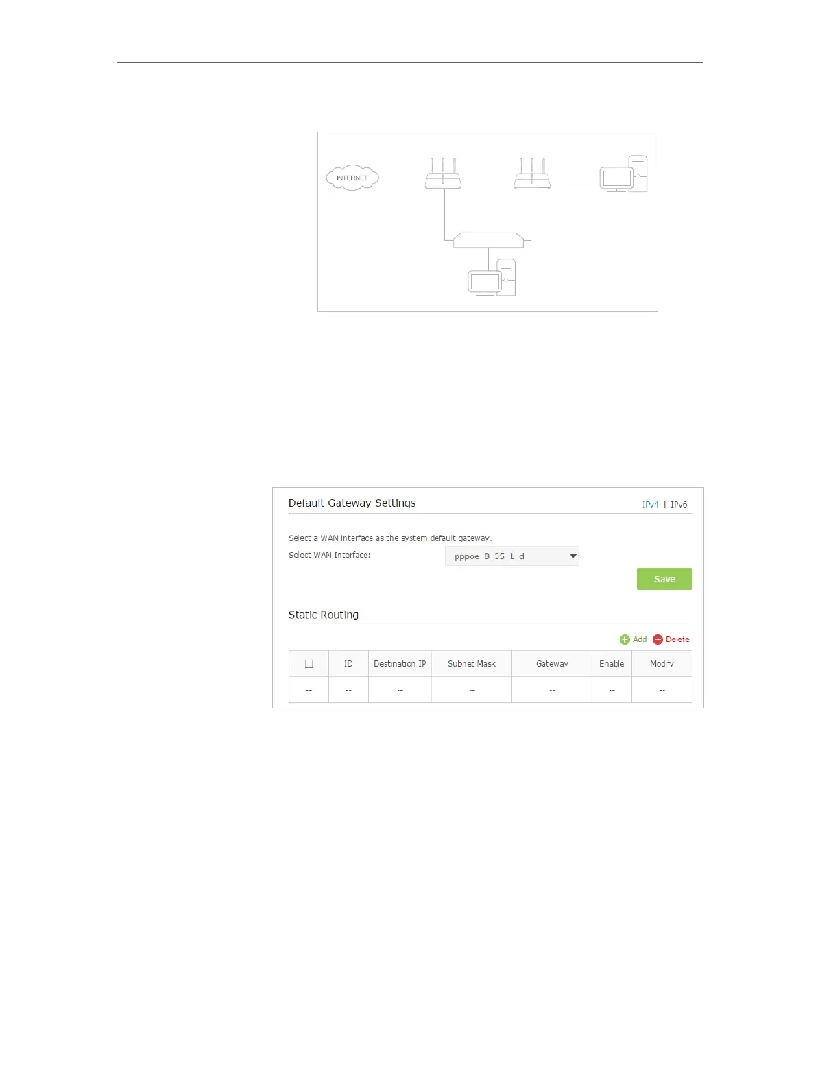 4. Click Add to add a new static routing entry. Finish the settings