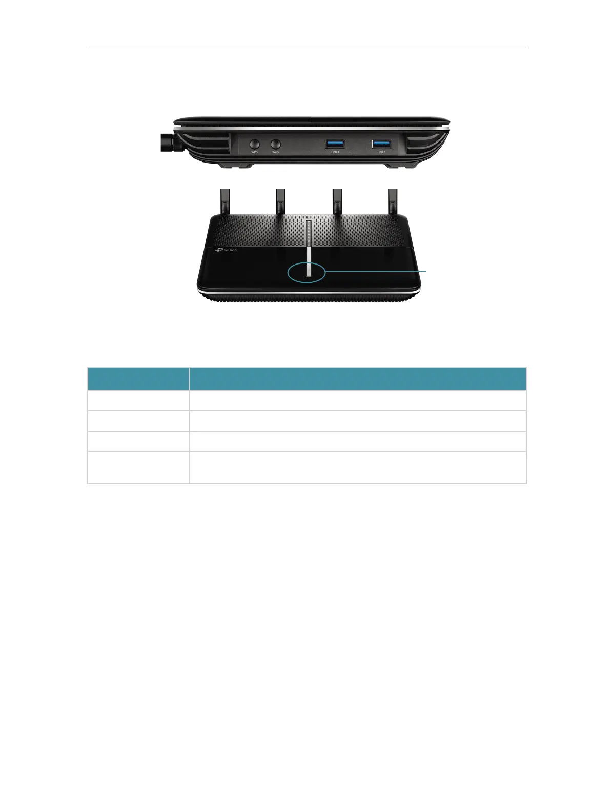 The modem router’s side and top panels show some ports and buttons. Refer to the