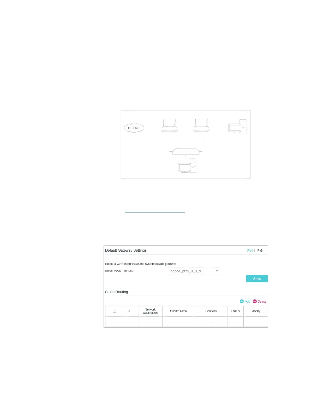 4. Click Add to add a new static routing entry. Finish the settings