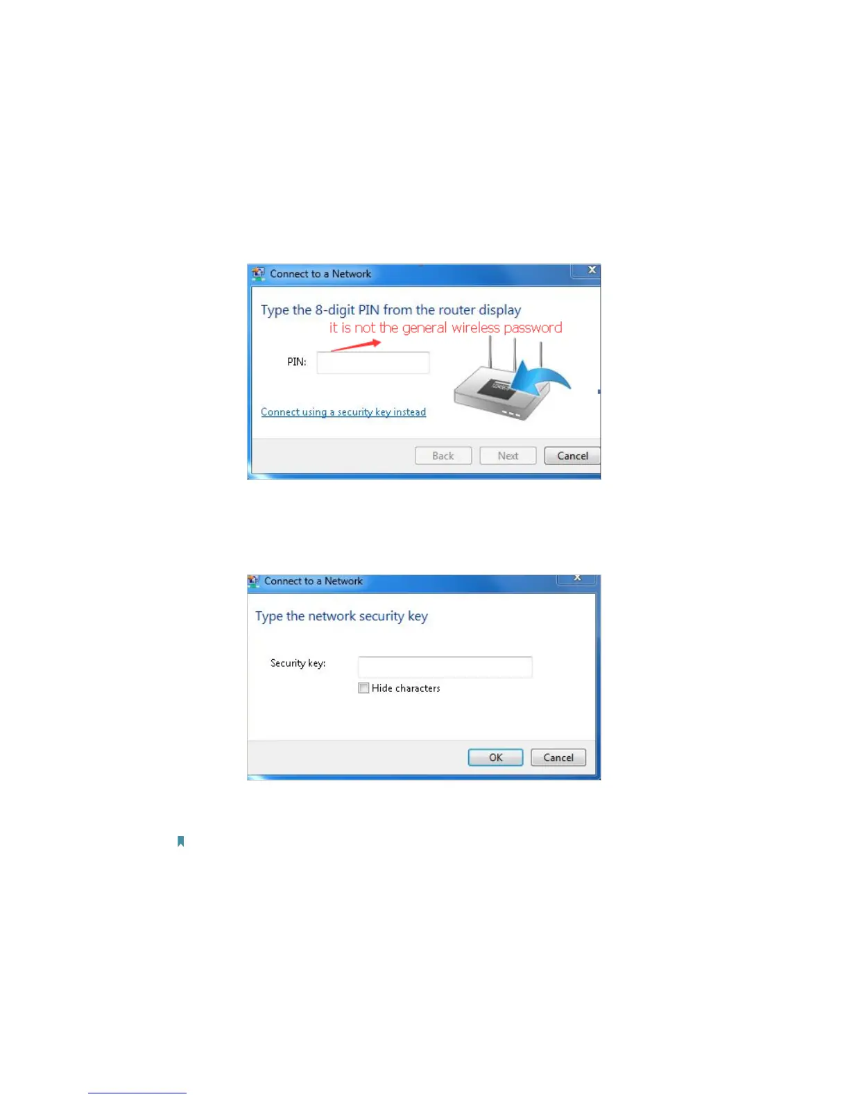 a security key instead”, and then type in the Network Security Key/Wireless