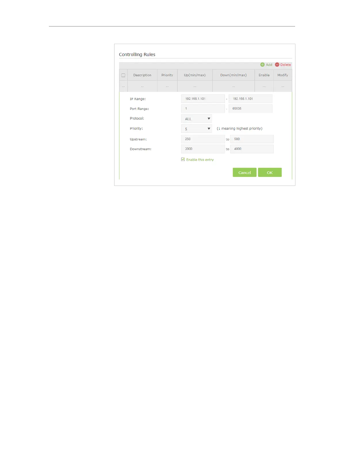 5 ) Upstream/Downstream: Enter the bandwidth according