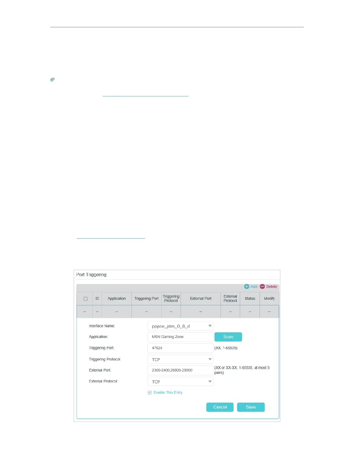 modem router can forward them to the corresponding host. Port triggering is mainly