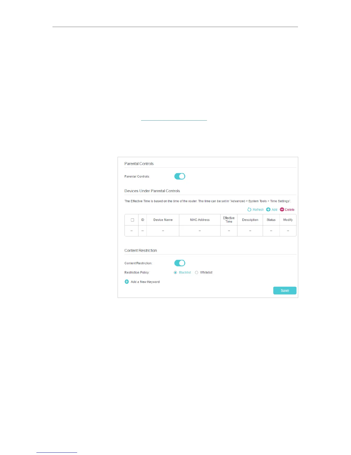 2. Go to Basic or Advanced > Parental Controls and enable