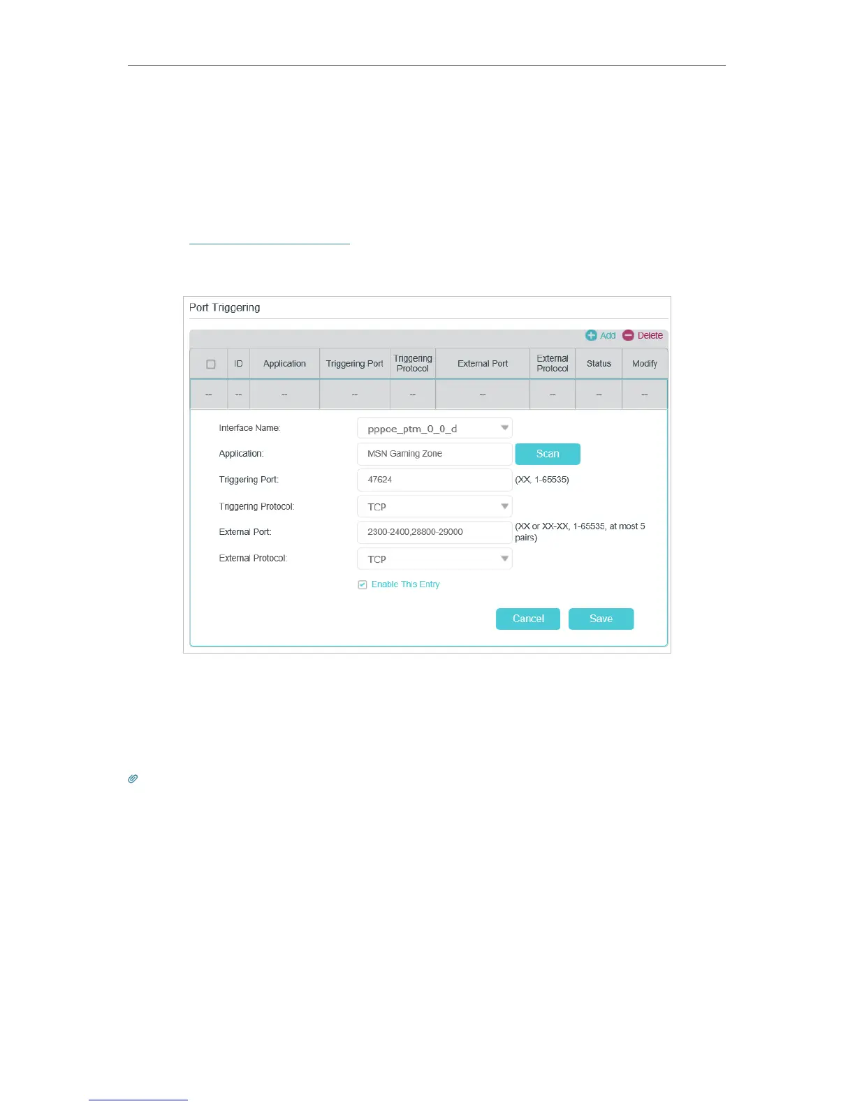 Follow the steps below to configure the port triggering rules: