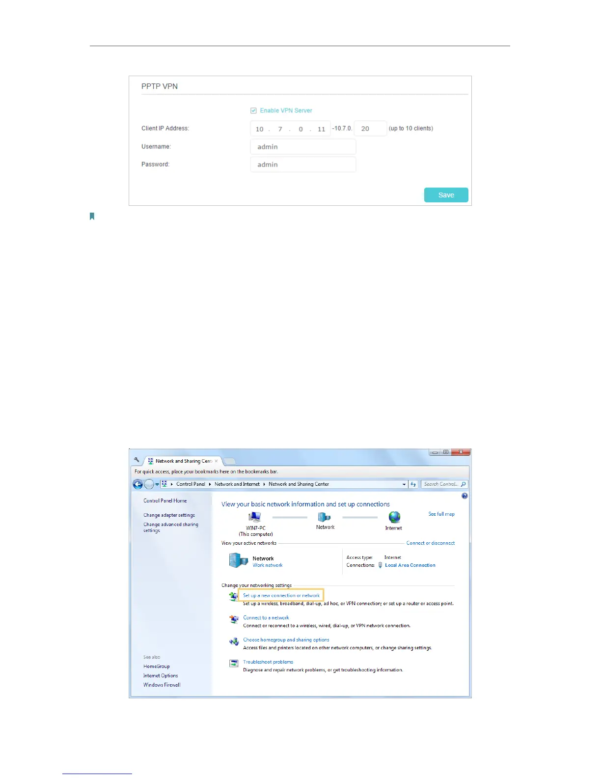 software to connect to PPTP Server. Here we use the Windows built-in PPTP software
