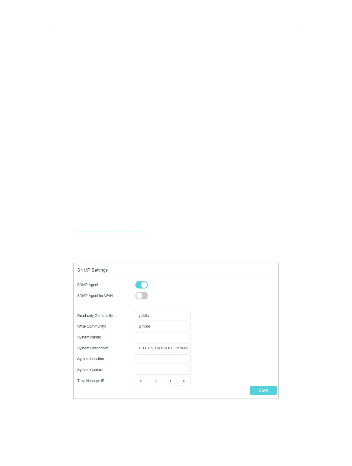 • SNMP Agent: Toggle On to enable the built-in SNMP agent that allows the router