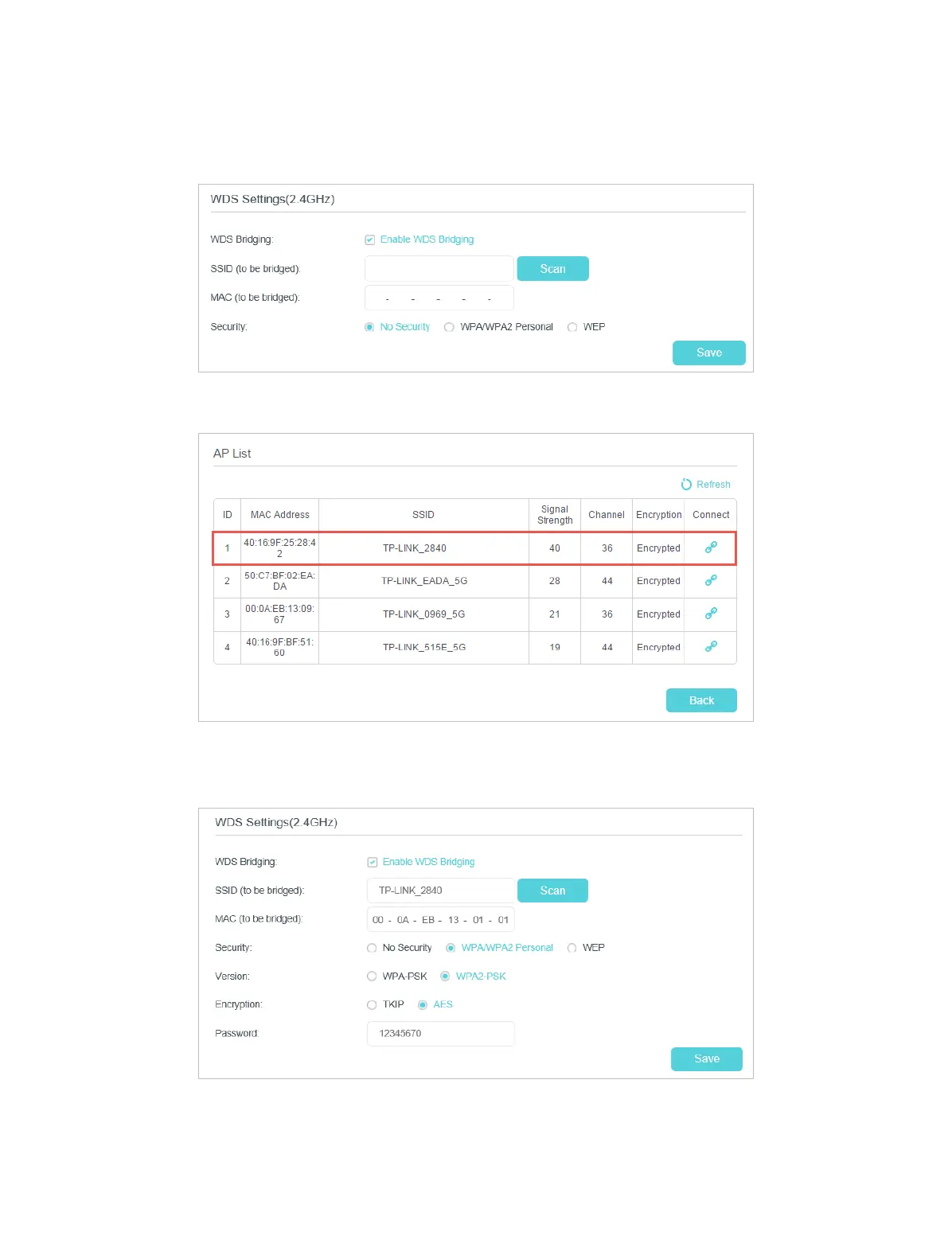3. Go to Advanced > Wireless > Advanced Settings page. Locate the WDS (2.4GHz)