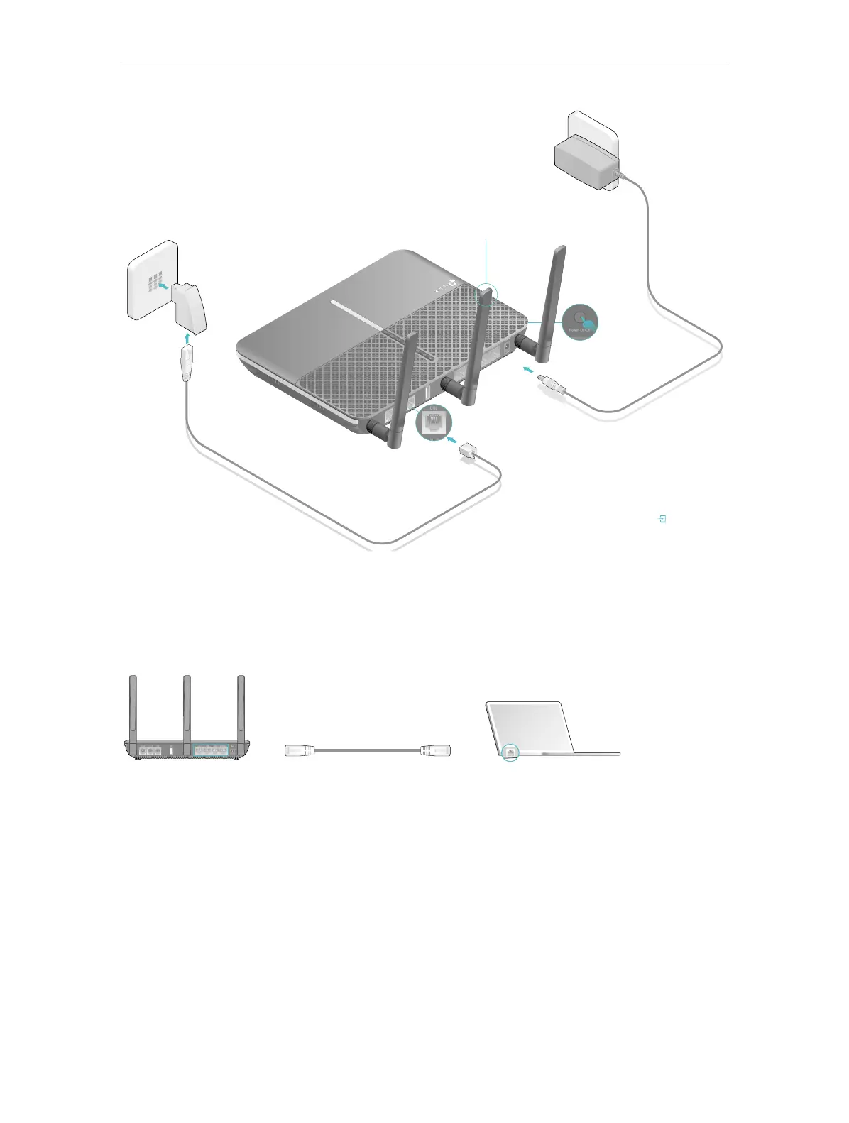 Connect your computer’s Ethernet port to the LAN port on the modem router via the