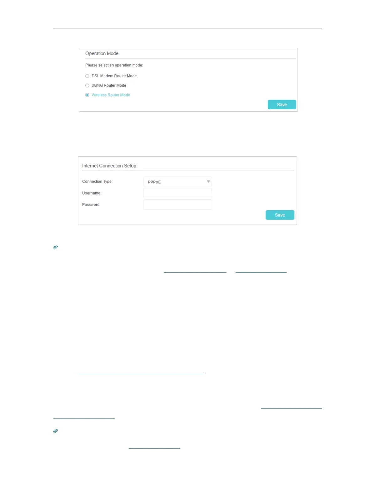5. Go to Basic > Internet, select the Connection Type, and enter the information
