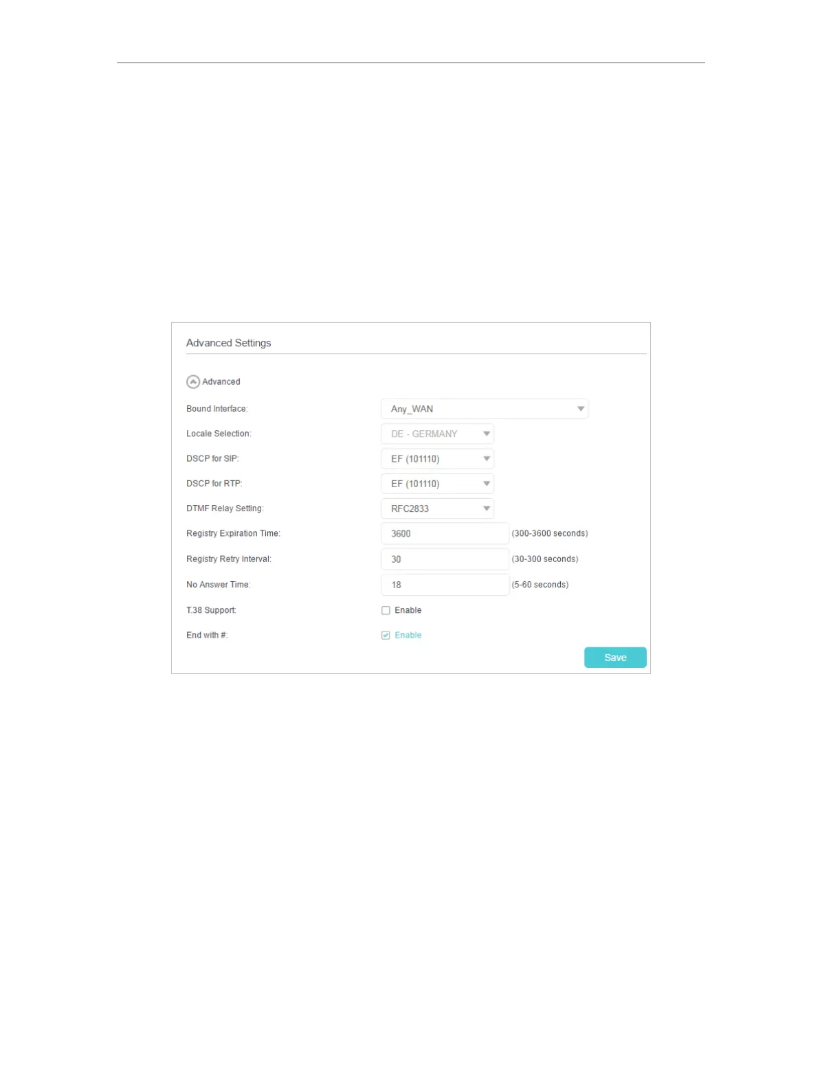 Click Advanced under Advanced Settings to configure more telephony settings.