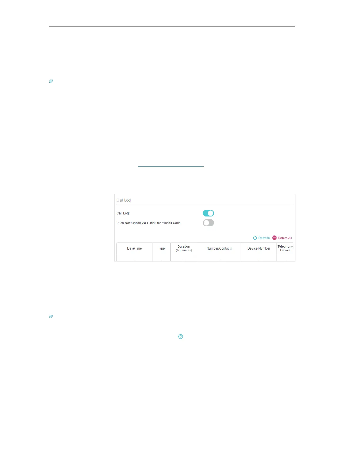 Internal number showed on the table are used to make calls between telephony devices connected to the same modem
