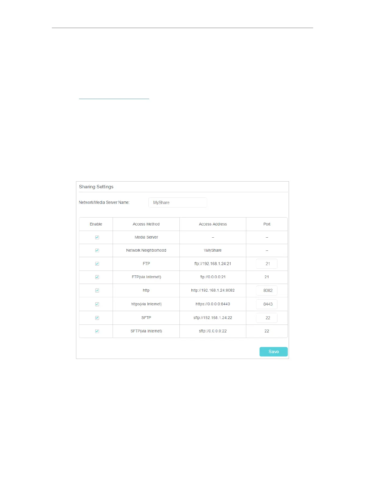 a Network/Media Server Name as you like, such as MyShare, then click Save.