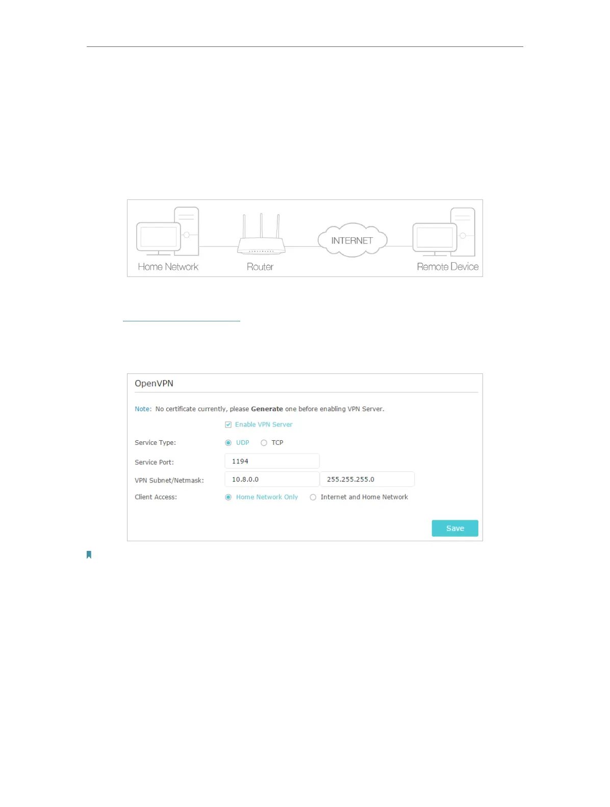 • The first time you configure the OpenVPN Server, you may need to Generate a certificate before you enable the
