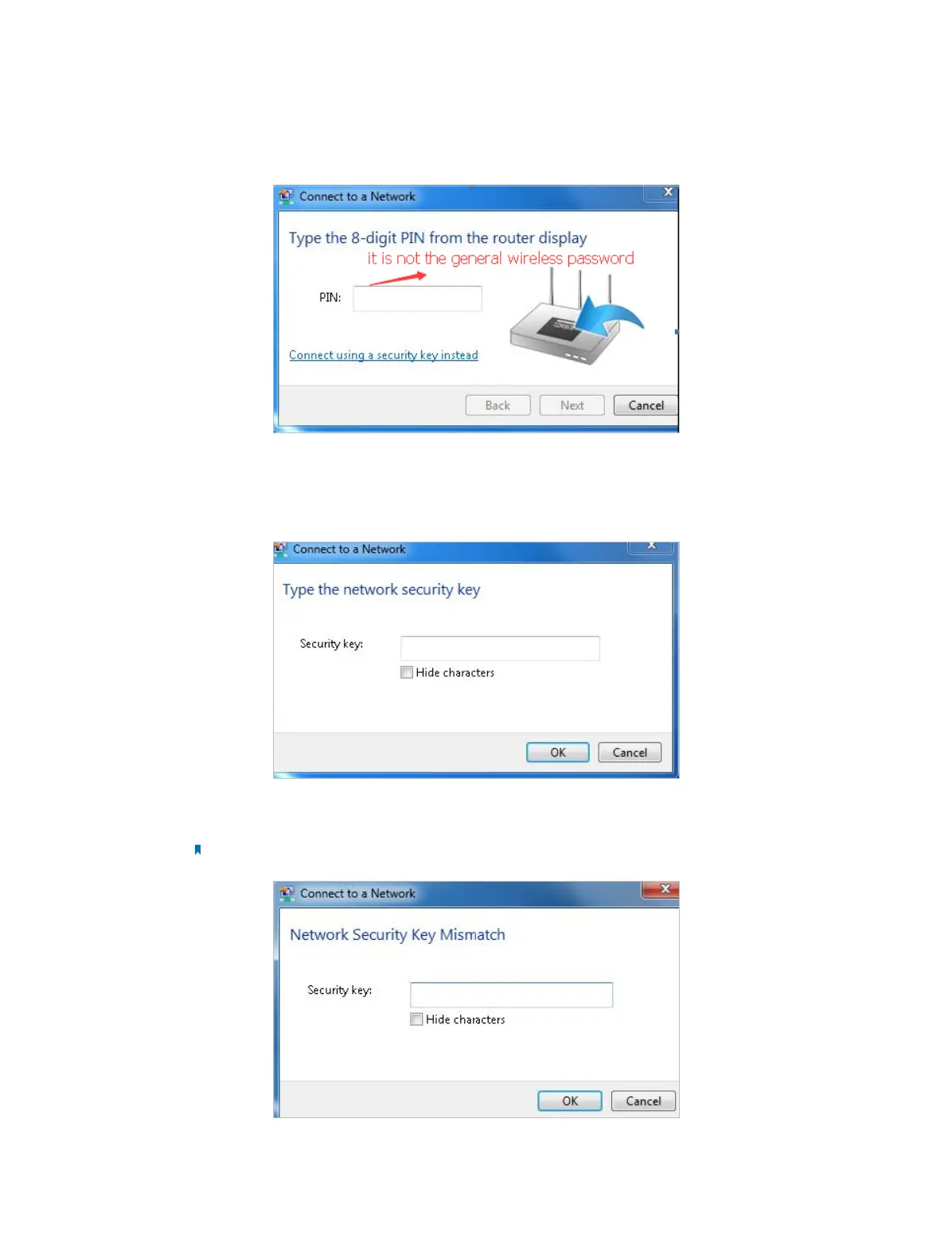 3 ) If it continues on saying network security key mismatch, it is suggested to