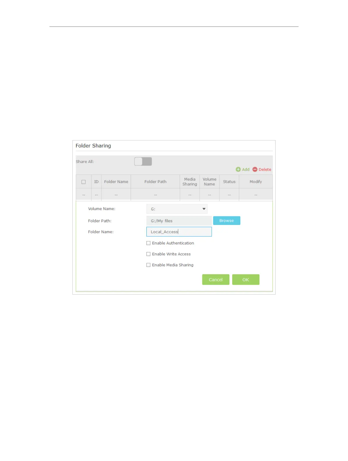 • Enable Authentication: Tick to enable authentication for this folder sharing,