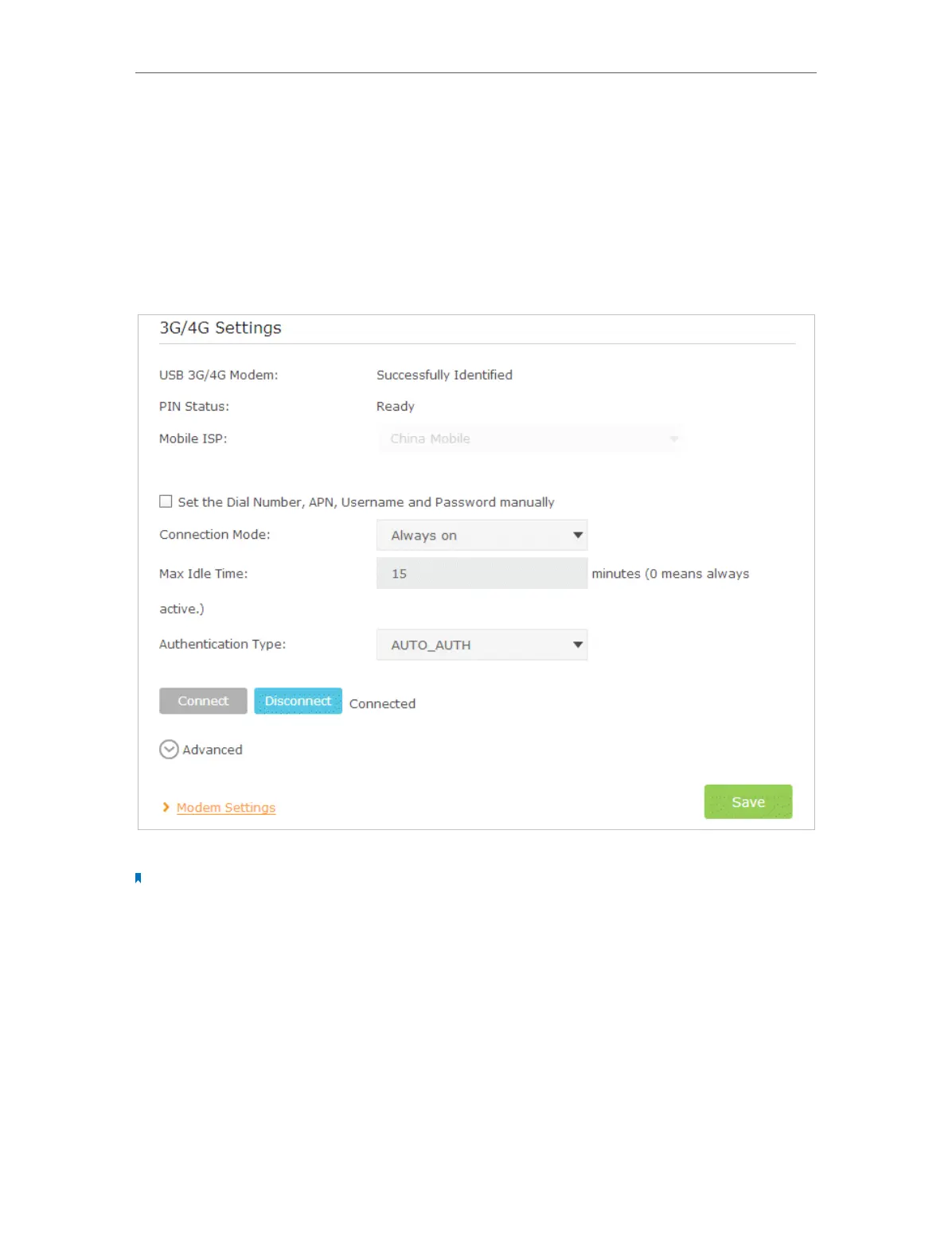 6. Verify that your USB 3G/4G Modem is successfully identified.