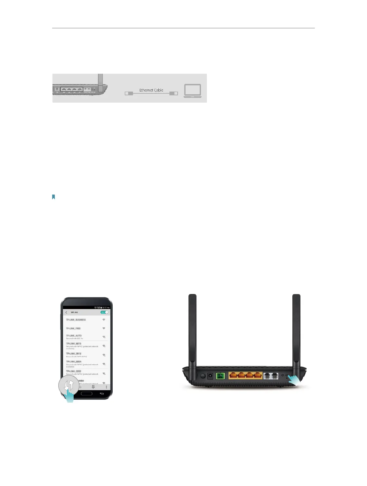 Connect your computer’s Ethernet port to the LAN port on the router via the Ethernet