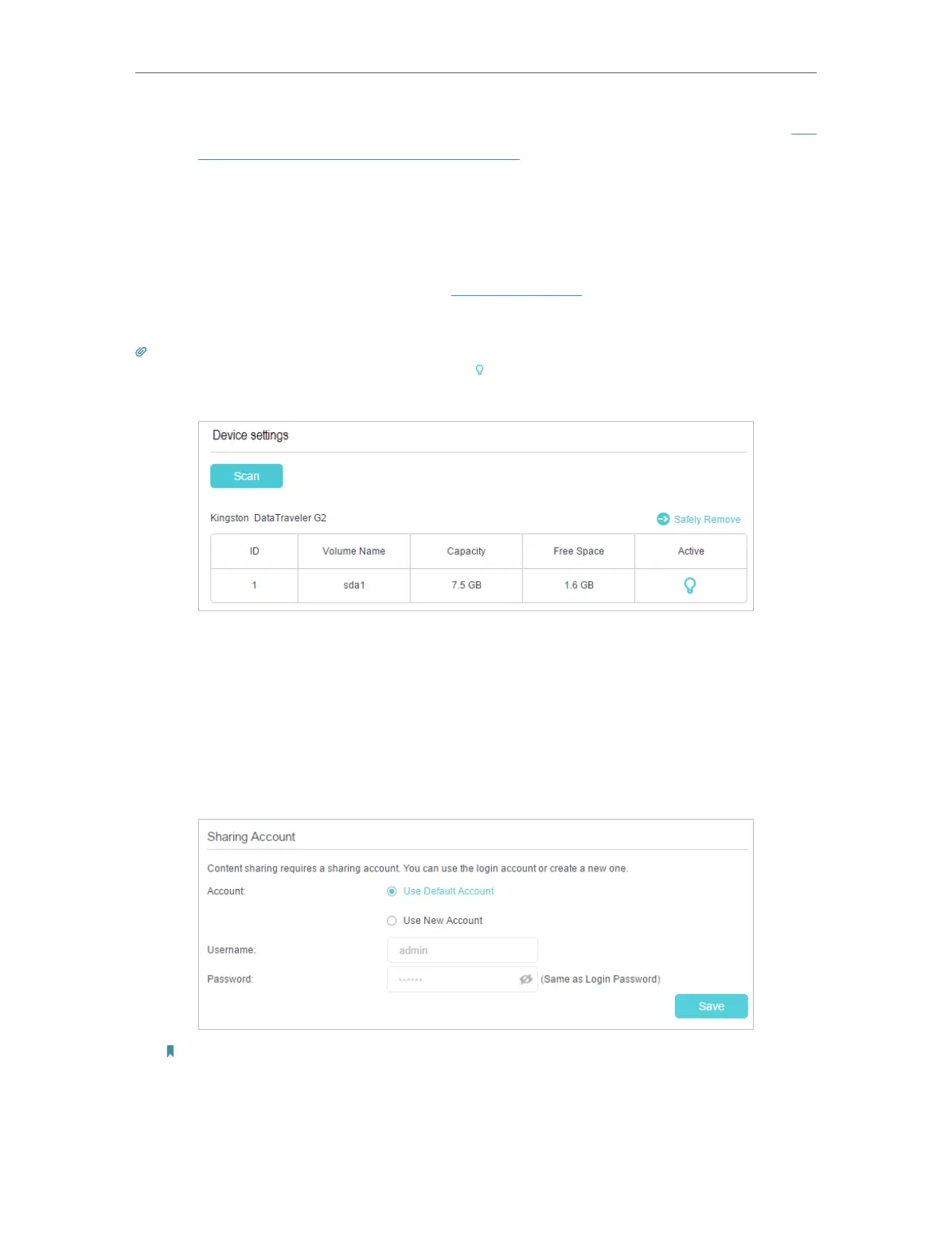 required to log in to the Sharing Account to access the USB disk. Refer to “ To