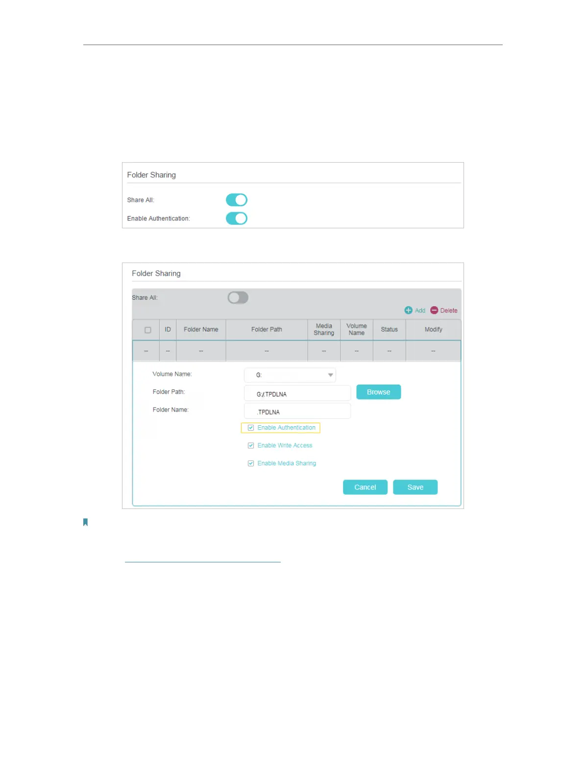 • If you leave Share All enabled, click the button to enable Authentication for all