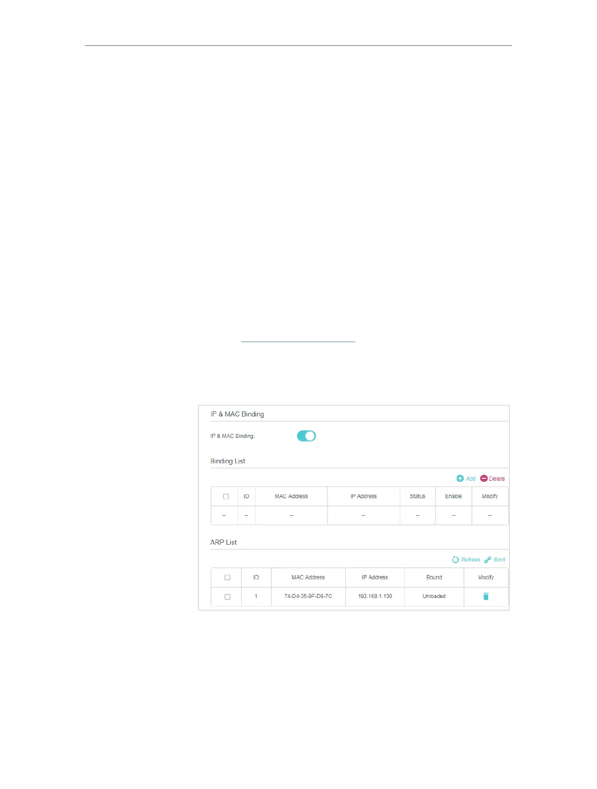 2. Go to Advanced > Security > IP & MAC Binding and enable IP