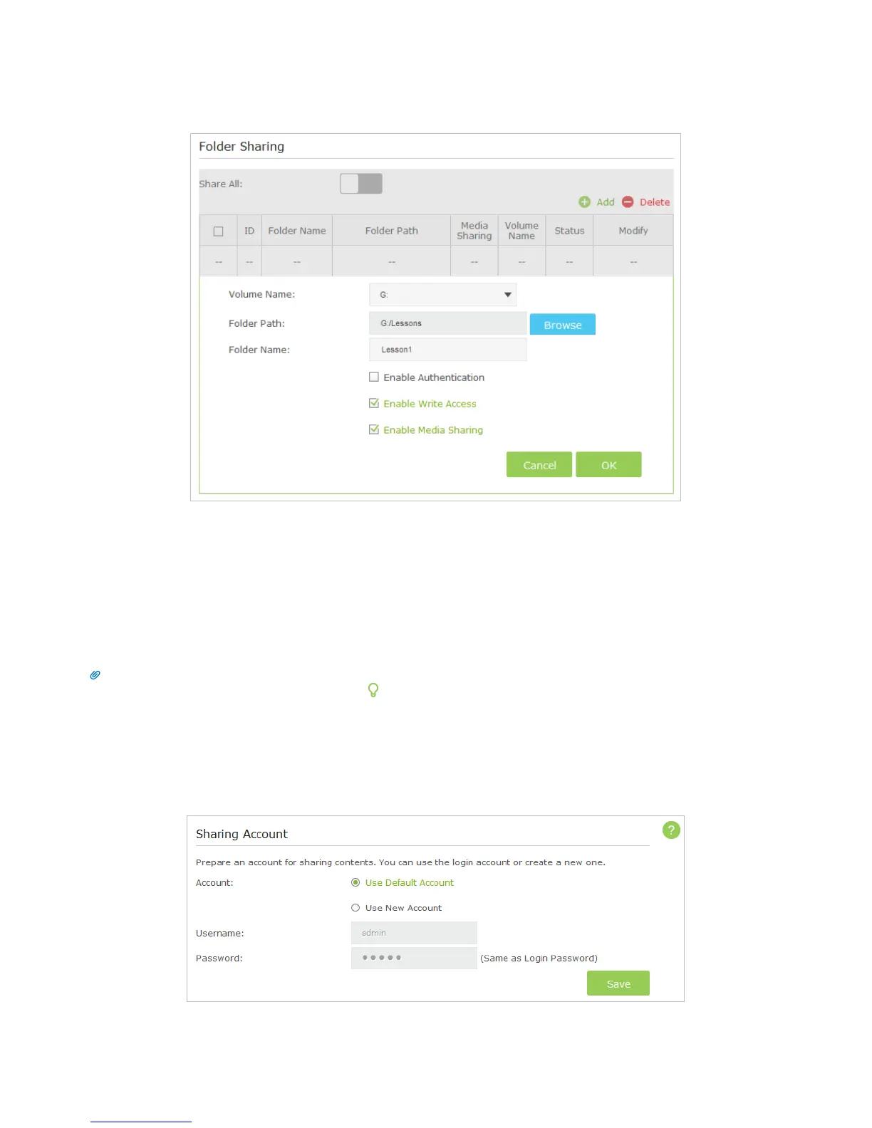 • Enable Authentication: Select to enable authentication for this folder sharing, and you will be required to use a username and