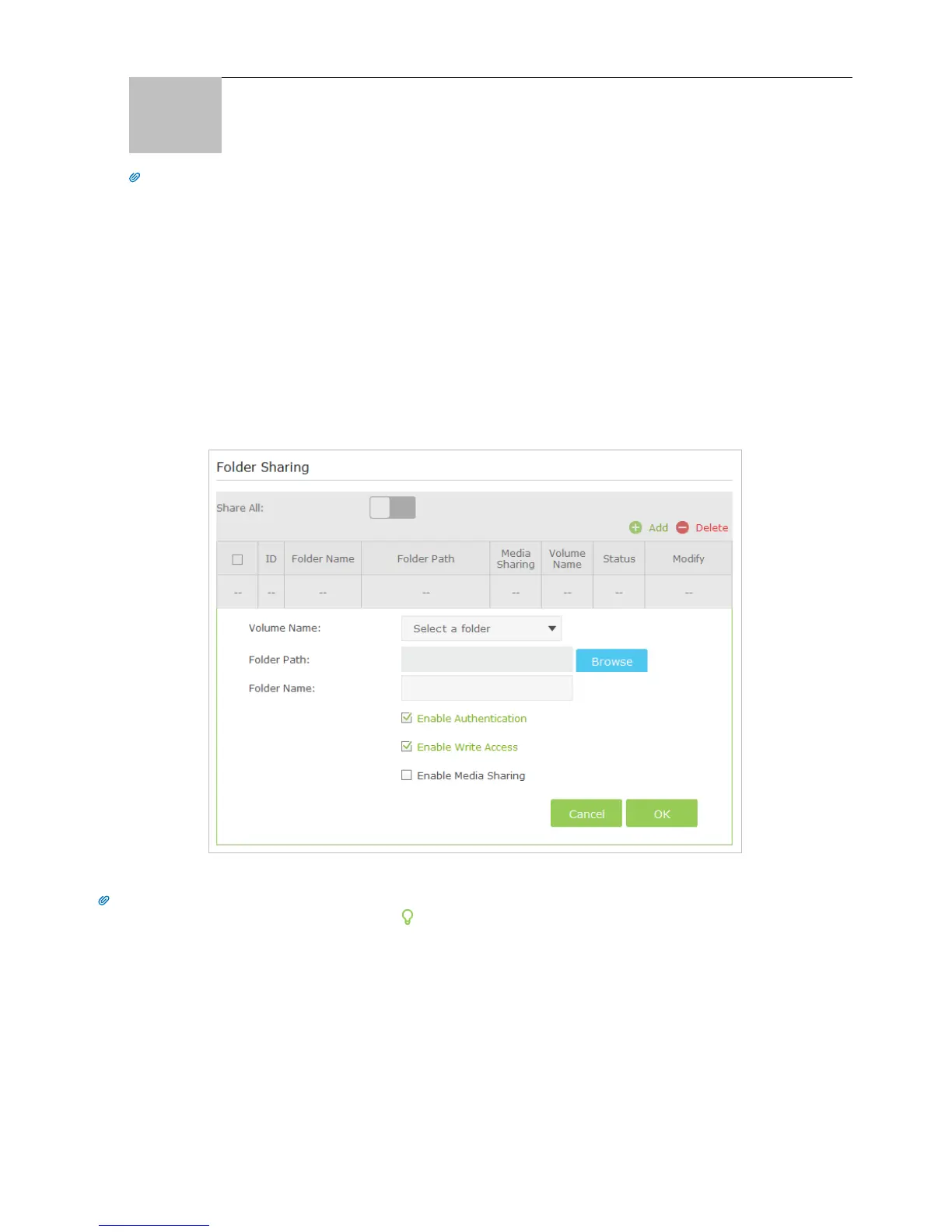 4. Select Enable Authentication. If you allow network clients to modify this folder, select Enable Write Access.