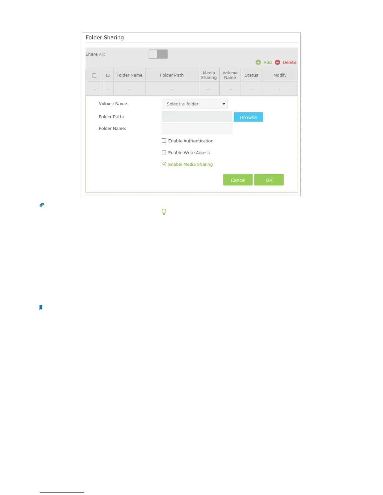 The router can share 32 volumes at most. You can click on the page to detach the corresponding volume you do not need to share.