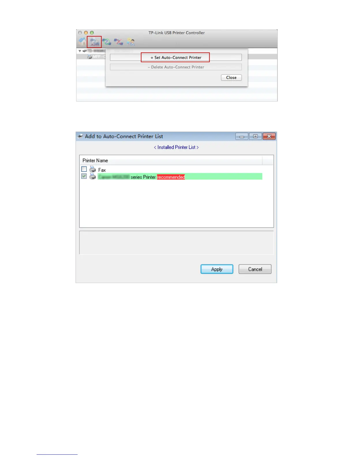 4 ) Select the printer you share, then click Apply.