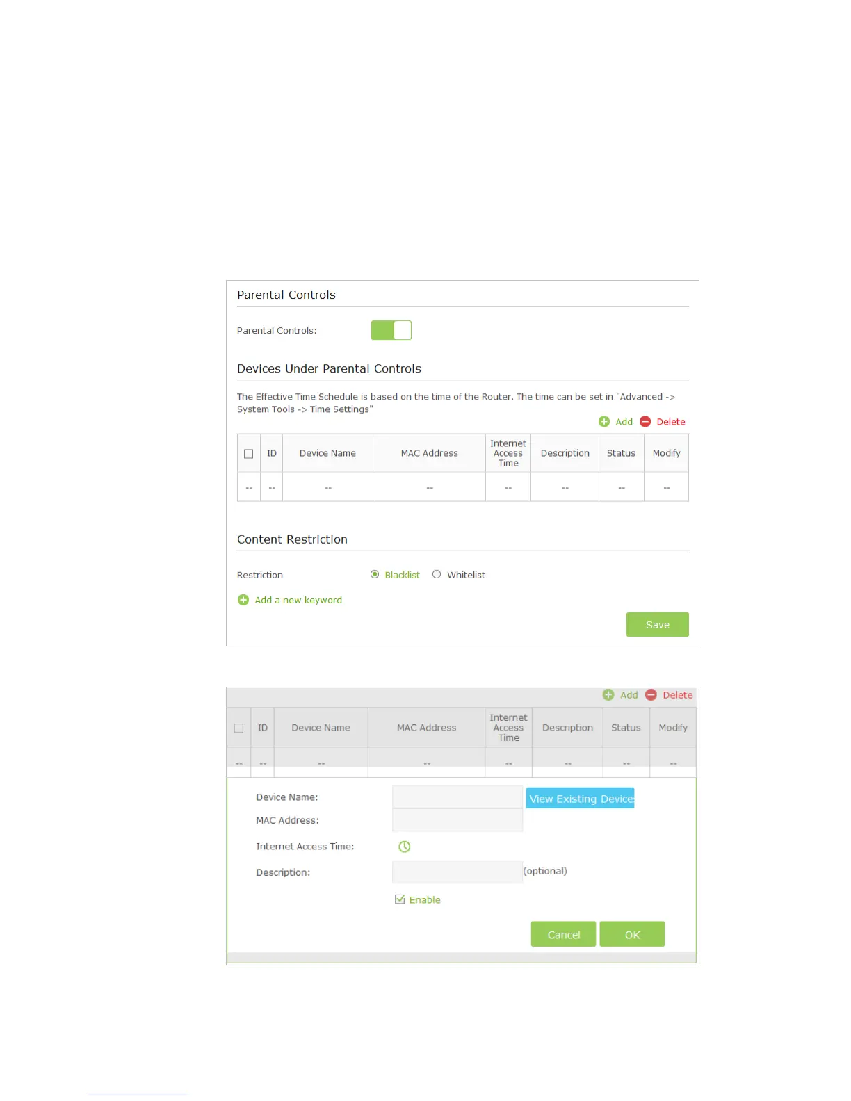 2. Go to Basic or Advanced > Parental Controls and enable Parental Controls.