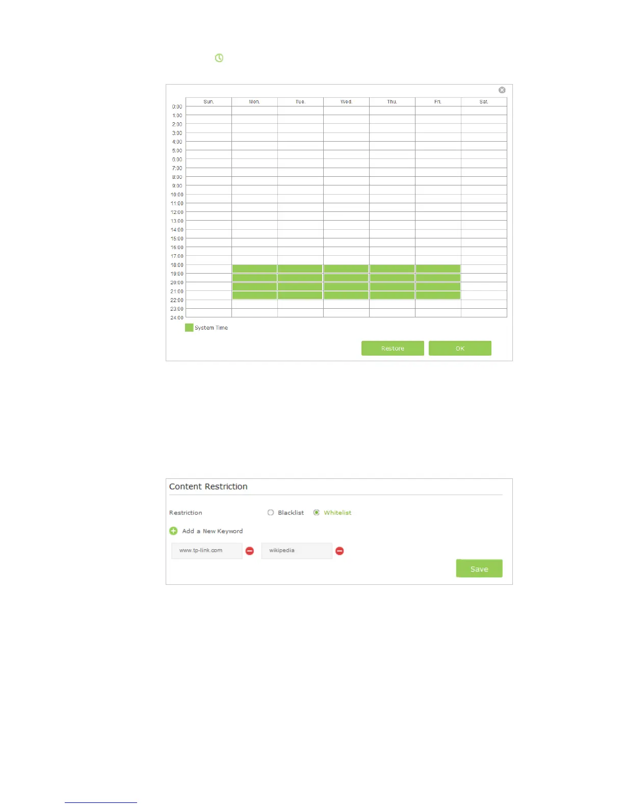 3 ) If you wish to block all Internet browsing access, do not add any keyword to the Whitelist.