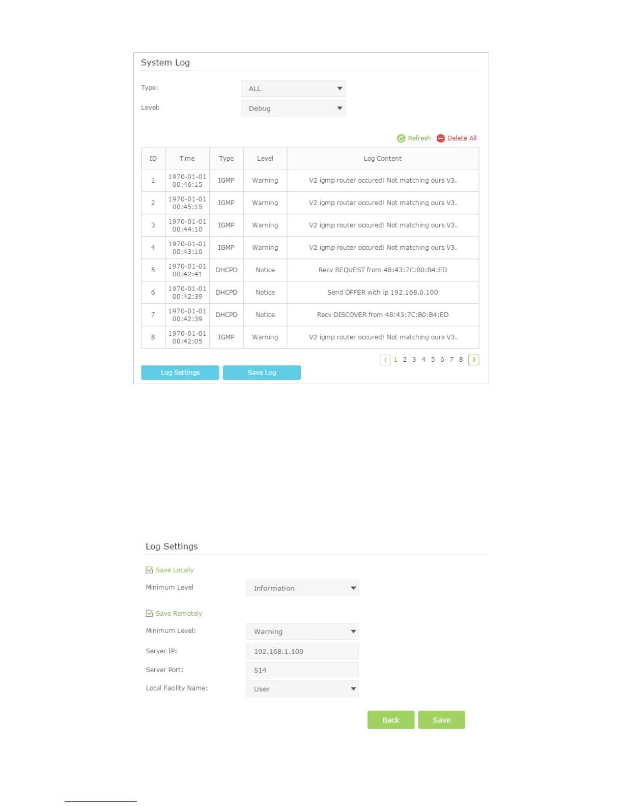 1. Select the log Type. Select ALL to view all kinds of logs, or select IGMP or PPP to view the specific logs.
