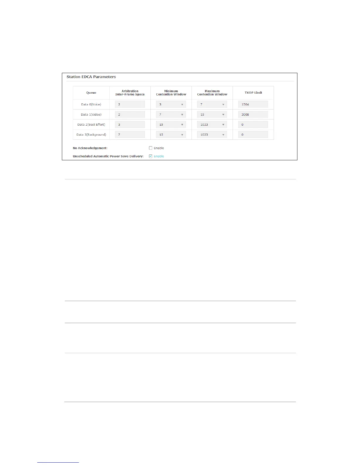 Station EDCA parameters affect traffic flowing from the client station to the EAP device.