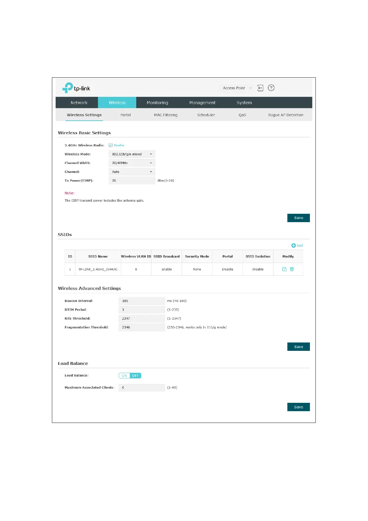 TP-Link Auranet EAP115-Wall - Wireless Settings