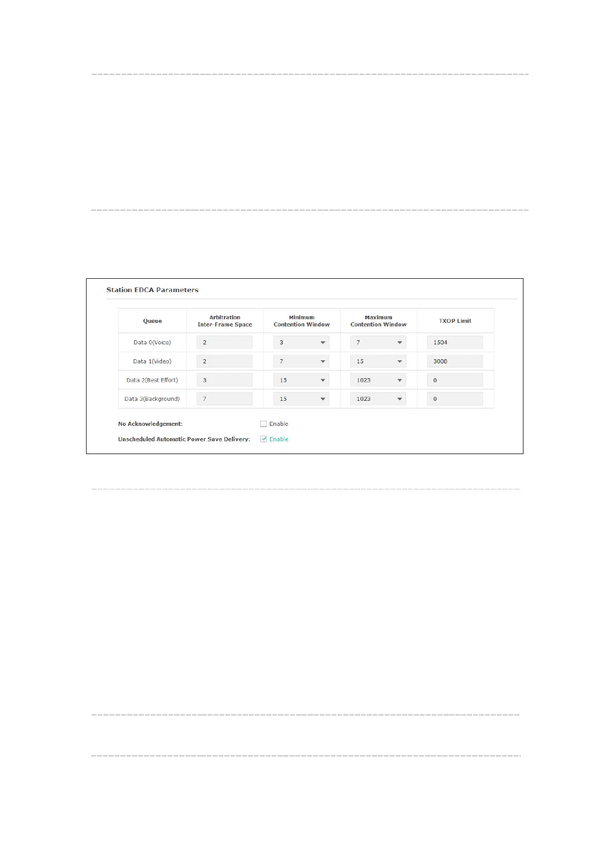 may be changed if you reset the EDCA parameters.
