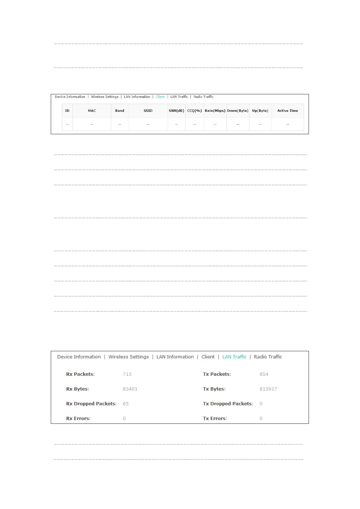 CCQ(%): Displays the wireless Client Connection Quality (CCQ). CCQ refers to the