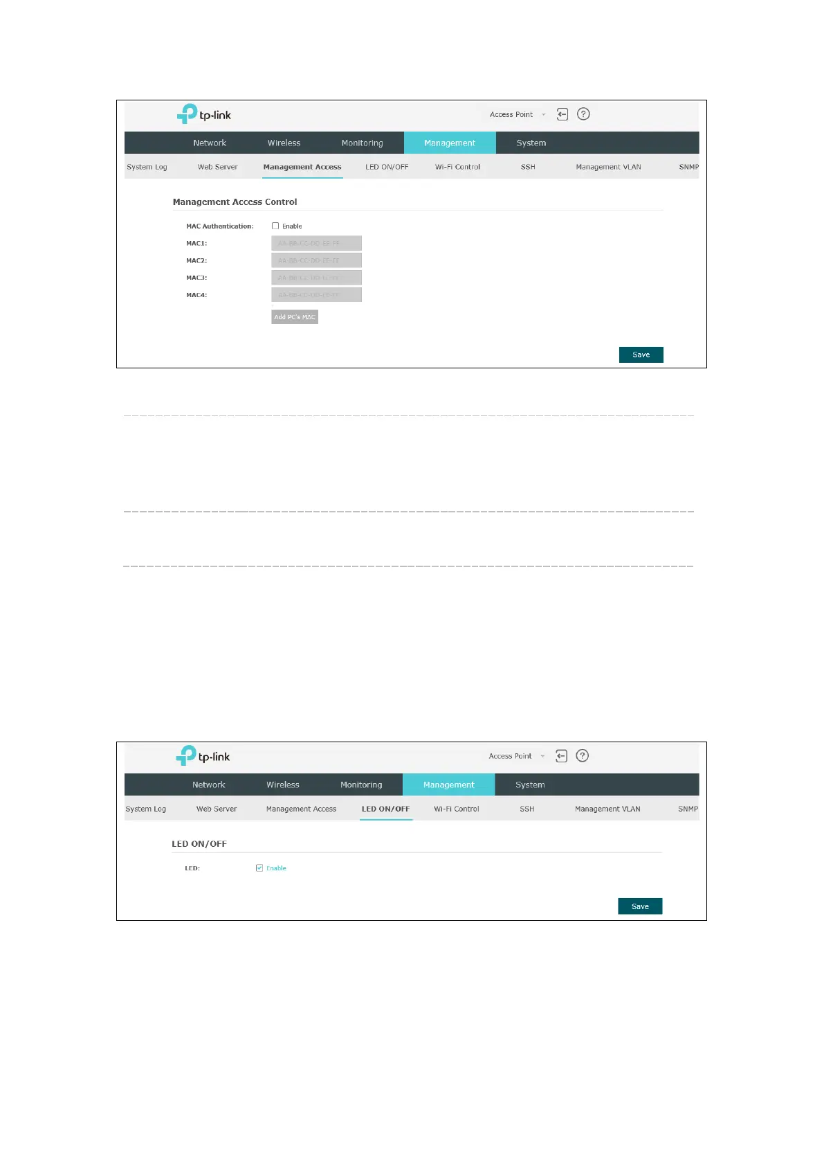 MAC1~MAC4: Enter the MAC addresses of the PCs which are authorized to log in the