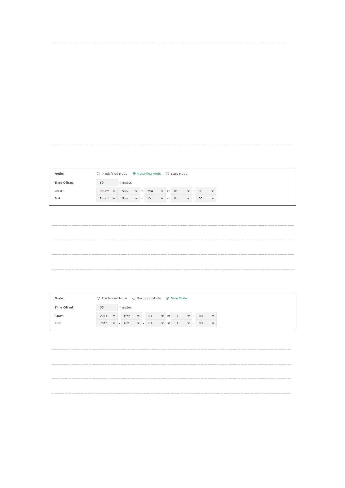 Start/End: Select starting time and ending time of Daylight Saving Time.