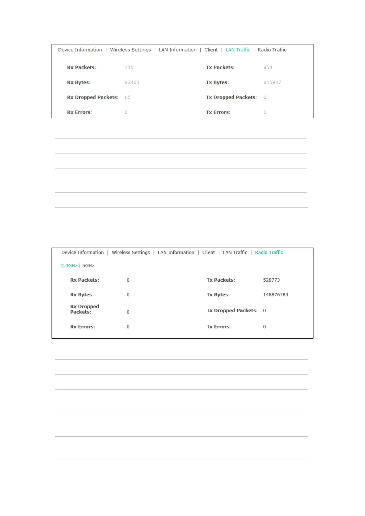 Click Radio Traffic and you can monitor the data transmission status of the wireless network.