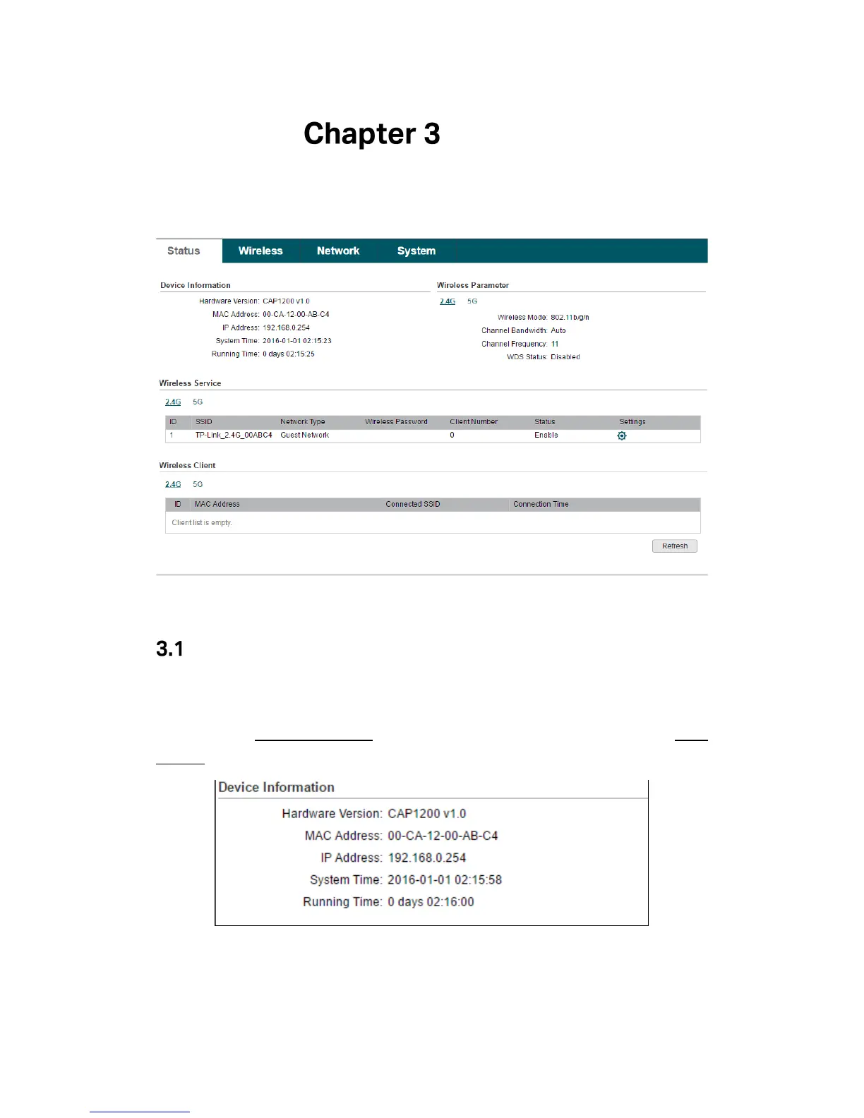system time and running time of the CAP. If you want to modify the IP address of the CAP,