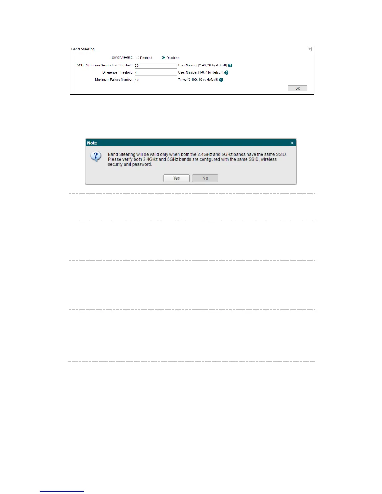 Band Steering: Select Enabled and click OK to enable Band Steering feature.